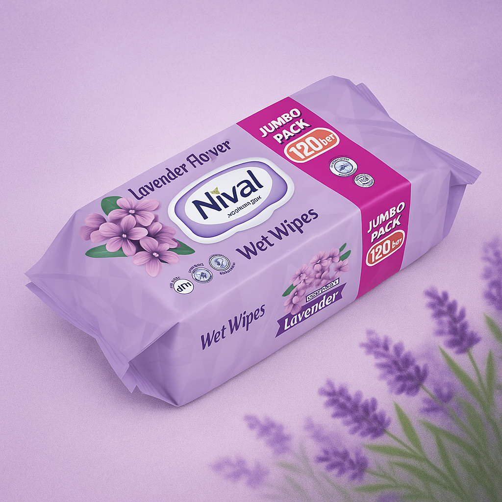 Clinically developed Nival Wet Wipes (120 count) feature a specialized lavender formulation optimized for sensitive skin protection. These premium wipes are manufactured without common irritants including alcohol, parabens, and harsh chemical agents, ensuring a non-allergenic cleansing experience. The delicate lavender essence provides a therapeutic aromatic quality while delivering a refreshing sensation that leaves skin soft without disrupting its natural protective barrier.