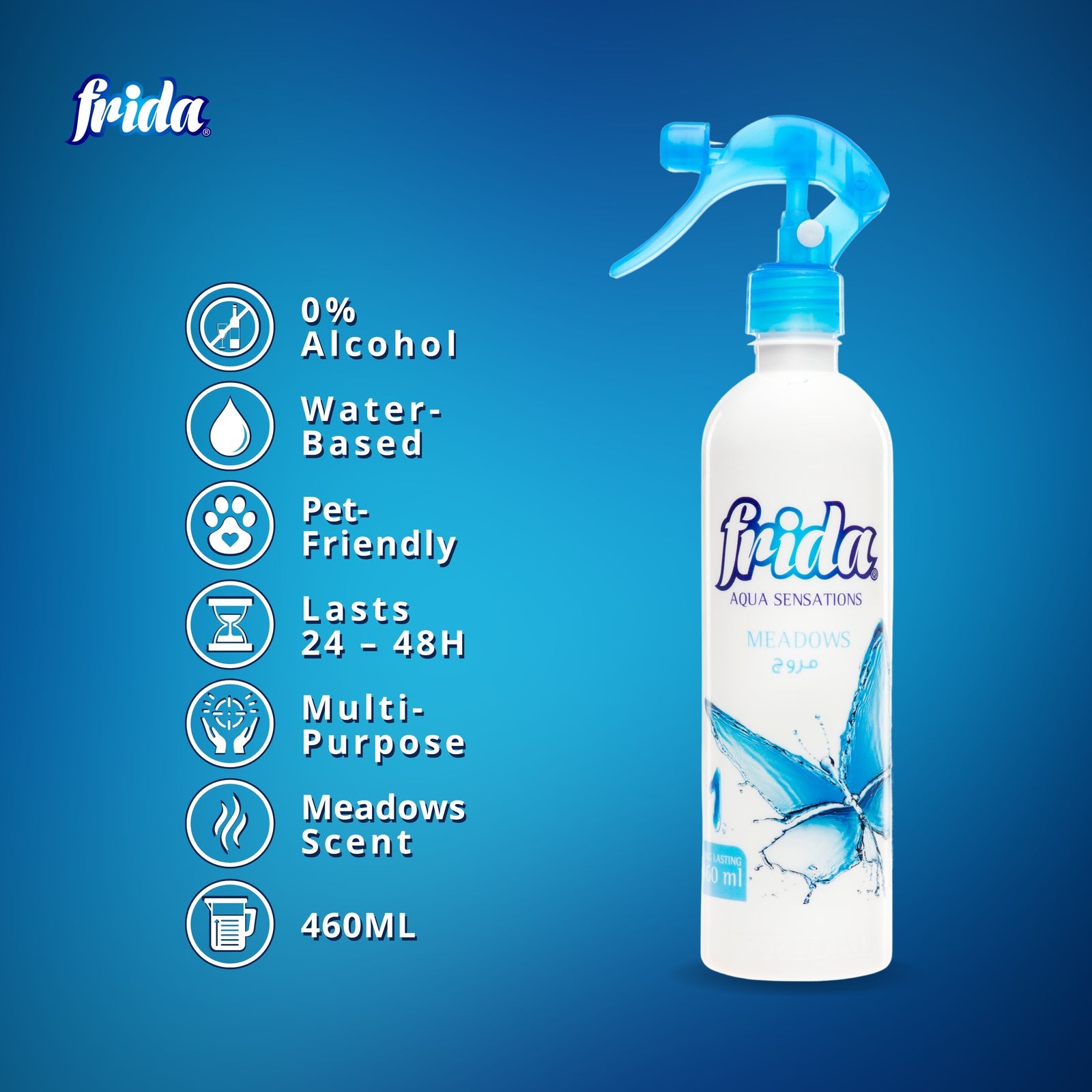 Frida Air Freshener - Meadows - 460ml offers a refreshing and natural fragrance inspired by open meadows. Its carefully balanced scent neutralizes unwanted odors, creating a clean and inviting atmosphere in any room. The 460ml size ensures long-lasting freshness, making it ideal for both home and office use. Designed for effective and expert odor control, this air freshener enhances your environment with a subtle, pleasant aroma.